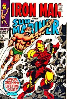 ![]() Iron Man and Sub-Mariner #1 (April 1968), cover art by Gene Colan (pencils) & Bill Everett (inks). | |