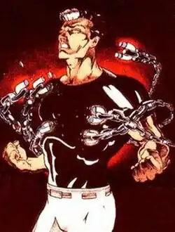 Soon thereafter, Arn received a mysterious diary written by Hugo Danner, his father.[10] He learned about his father's troubled life as one of the 20th century's first metahumans.[11] This led the young hero on a quest to learn of his father's fate. After having read his father's diary, Arn turned to the government's secret Project M, demanding to know the location of the "Dinosaur Island" mentioned in his father's diary. There he met Georgia Challenger, who led him instead to Maple White Land in South America. Surprisingly they found Arn's father, Hugo Danner, who had spawned a new band of "offspring", the Sons of Dawn.[12] Danner used his father's formula to bestow powers on these Sons of Dawn and mentioned that the creators of the villain Übermensch had also stolen that formula.[13]