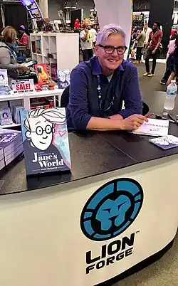 Jane's World was a comic strip by cartoonist Paige Braddock that ran from March 1998 to October 2018. Featuring lesbian and bisexual women characters, the strip stars Jane Wyatt, a young lesbian living in a trailer in Northern California with her straight male roommate, Ethan, and follows her life with her circle of friends, romances, and exes. Shortly after celebrating its 20th anniversary, publication ended with Jane marrying Dorothy.[1]