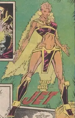 Jet is a fictional superhero published by DC Comics. She first appeared in Millennium #2 (January 1988) and was created by Steve Engelhart and Joe Staton.
