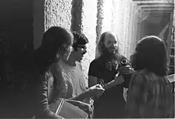 ![]() Jim Franklin (holding megaphone) backstage at the Ritz Theatre 1975 | |