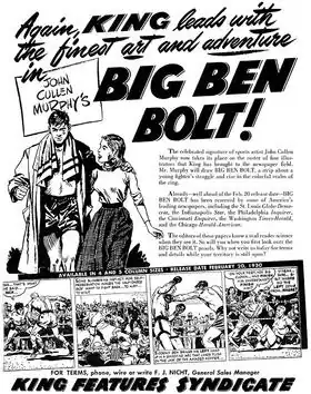 Murphy's art often depicted sports subjects. His boxing material unexpectedly led him into the comic strip field, something he had never previously considered. In 1950, writer Elliot Caplin (brother of cartoonist Al Capp) of King Features Syndicate asked Murphy to illustrate a boxing comic strip he was planning to write. Murphy accepted his invitation. The resulting daily comic strip, Big Ben Bolt, was launched in 1950 and ran until 1978.[7]