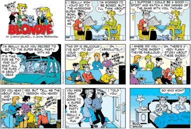 Marshall began assisting Denis Lebrun on Blondie in December 2002. He became the strip's lead artist in May 2005, although he remained uncredited until Sunday, January 7, 2007. Former Cracked cartoonist Frank Cummings was Marshall's assistant on Blondie from 2004 until his death in 2014.[5] Computer technology made it possible for Marshall, Young and Cummings to collaborate even though they live in three different states. Cummings lived in Birmingham, Alabama, while Young alternates between Vermont and Florida. Young says that Marshall and Cummings were "doing a most wonderful job".[6]