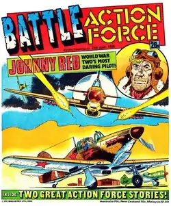 - ↑ Tom Tully (w), John Cooper (a). "Johnny Red" Battle Picture Weekly (4 June to 10 September 1983). IPC Magazines.