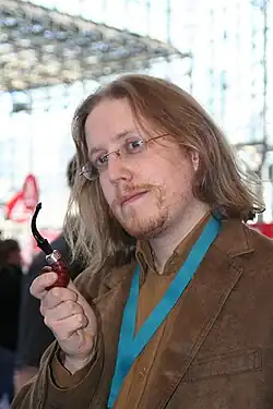 In 2006, he appeared as a character in the comic book CSI: Dying in the Gutters as a source of "inside joke" humour by featuring him as the victim in a murder mystery set at a comic book convention and using other notable real-world comics creators as suspects in the crime.[34] He also appeared as a character in the Jodie Picoult novel, The Tenth Circle[35] and made a more major appearance in the Leverage novel The Con Job.[36]