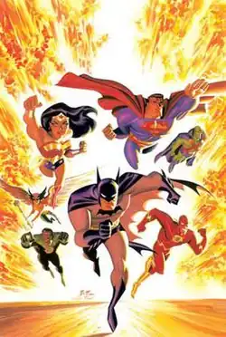 Justice League is an American animated television series which ran from November 17, 2001, to May 29, 2004, on Cartoon Network.[1] The show was produced by Warner Bros. Animation. It is based on the Justice League of America and associated comic book characters published by DC Comics. It serves as a sequel to Batman: The Animated Series (including The New Batman Adventures) and Superman: The Animated Series, as well as a prequel to Batman Beyond, and is the seventh series of the DC Animated Universe. The series ended after two seasons, but was followed by Justice League Unlimited, a successor series which aired for three seasons.