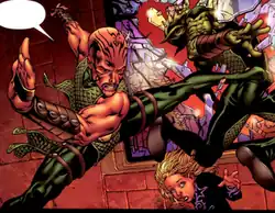 During the Secret Invasion, Karnak encounters a Skrull in the form of Toros.[37] Karnak engages it and learns that it can copy his powers. Karnak manages to defeat the Toros-Skrull by sending it out the window where it was impaled on a fence.[38]