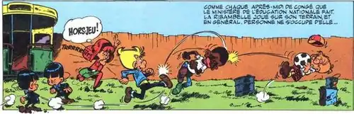 In the 1920s, the Sunday pages of American artist Martin Branner's Winnie Winkle the Breadwinner focused on the adventures of her little brother Perry and his gang the Rinkydinks, which included a Chinese boy called Chink. Their stories proved very popular in Europe. Perry was renamed Bicot for the French market and European artists made new comics about him and the Rinkydinks when Branner's weekly pages were no longer sufficient.[1] The Our Gang films were also popular and featured African-American kids as well as whites. Among the Belgian children who enjoyed these series were André Franquin and Jean Roba.[2]