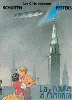 La route d'Armilia is a graphic novel by Belgian comic artists François Schuiten and Benoît Peeters, the fourth volume of their ongoing Les Cités Obscures series. It was first published in an early, notably different version in Danish as Vejen Til Armilia in 1987, in its final form in the Franco-Belgian comics magazine À Suivre (#123), and as a standalone French album first in 1988 by Casterman. Although subsequently also published in at least Dutch and German, La route d'Armilia remains unpublished in English as of 2008; however, an English translation authorized by Casterman is available on the internet as a .txt file (see External links below). An unofficial digital edition (available online) has been produced by lettering French scans with this English manuscript.