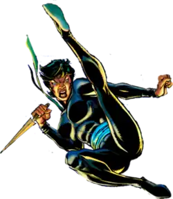 She is later revealed to be a League of Assassins member who taught Red Hood along with Bronze Tiger. She fights alongside Bronze Tiger, Cheshire, December Graystone, Rictus, and Red Hood as the Untitled infiltrated the League of Assassin's secret city.[20]