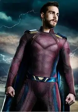 - Primarily appearing in Supergirl, this version is a prince and son of Lar Gand (portrayed by Kevin Sorbo) and Rhea (portrayed by Teri Hatcher), though he initially believed that he was the prince's bodyguard.[28] Introduced in the second season, Mon-El crash-lands on Earth and enters a coma sometime prior to the series. Upon awaking in the present, he battles Supergirl due in part to an ancient feud between Krypton and Daxam until she reveals that Daxam was destroyed alongside Krypton. After the Department of Extranormal Operations (DEO) release Mon-El into Supergirl's custody, she helps him integrate into Earth's society and use his powers for good. He adopts the alias Mike Matthews and eventually becomes a bartender at an alien bar.[29] After Mon-El's parents come to Earth to retrieve him, he reluctantly goes with them due to Rhea's machinations until Lar Gand allows him to stay on Earth with Supergirl.[30] Refusing to accept this, Rhea kills Lar Gand and attempts to conquer Earth, only to be foiled by Lena Luthor, who uses her brother Lex Luthor's equipment to lace Earth's atmosphere with a mixture of Kryptonite and lead to make the planet uninhabitable for Daxamites.[31] Following the deaths of Rhea and several Daxamites, Mon-El leaves for deep space, where he enters a time portal, ends up in the 31st century, becomes a founding member of the Legion, and marries fellow Legionnaire Imra Ardeen over the course of seven years.[32] After returning to the present to help Supergirl defeat Reign,[33] Mon-El breaks up with Ardeen and brings Winn Schott to the 31st century to induct him into the Legion.[34]