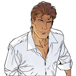 The birth of the character came in 1973, while Van Hamme was having lunch in New York City with Greg, chief editor of Tintin. The magazine sought to expand to the American market and Van Hamme was tasked with creating the comic character and genre interesting for an American audience. He thus opted for a business-thriller idea about a young mysterious billionaire, which would allow him to demonstrate his knowledge of economics. John Prentice, noted for his work on Rip Kirby, was chosen as the artist, and he drew a couple of boards before withdrawing from the project that was soon abandoned. Van Hamme first revived the character in form of an airport novel in 1978, encouraged by the huge popularity of Gérard de Villiers' SAS novels. The series lasted through 1985 when it came to a halt again. Finally, in 1990, being approached by Francq, Van Hamme used the character yet again in comic form, and it had instant success.[3]