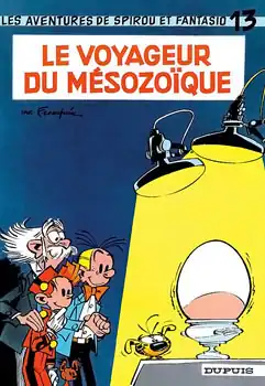 Le voyageur du Mésozoïque, written by Franquin and Greg, drawn by Franquin with assistance by Jidéhem, is the thirteenth album of the Spirou et Fantasio series. The title story, and another, La Peur au bout du fil, were first serialised in Spirou magazine before the release in a hardcover album in 1960.