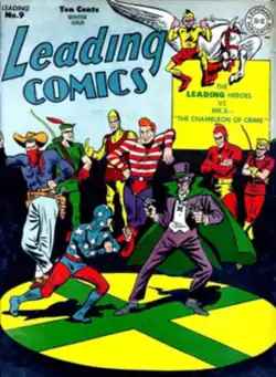 ![]() Cover of Leading Comics #9 (Winter 1943), featuring the Seven Soldiers of Victory. | |