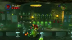 There are thirty levels in the game (divided into fifteen each for the heroes and the villains)[8] as well as two secret levels, which sees the player exploring miniature versions of the Wayne Manor and Arkham Asylum to collect studs. There are many different environments in the game, usually based upon the villains' crime styles, including an ice cream factory, a botanical garden, and the Gotham sewers. The game is divided into chapters, each containing five levels.[6] Chapters are divided equally between heroes and villains, having three chapters each.[6] Completing a hero chapter unlocks the corresponding chapter for the villains.[6] As in previous Lego video games, levels are unlocked for "Free Play" mode once they are completed in Story Mode.[6] "Free Play" allows the player to replay any level they have completed, but with any characters they have unlocked so far.[6] This permits access to special areas containing additional collectibles, where the player was unable to get to before. This is unlike Story mode, in which the player may only switch between the two characters involved in that scene.[6]
