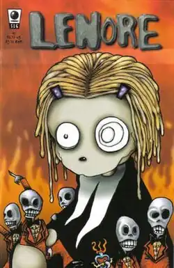 Lenore, the Cute Little Dead Girl is a black comedy comic series created by Roman Dirge, inspired by the poem "Lenore" by Edgar Allan Poe. Lenore has appeared in several comic books by Dirge. From 1998 to 2007, she featured in her own series published by Slave Labor Graphics. Twenty-six flash-animated shorts were also produced for Sony's ScreenBlast website in 2002. In July 2009, a new comic series started, now published by Titan Books and called Lenore Volume II. Previous issues were made into colored edition trade paperback called Lenore Volume I, which is separated into three books.