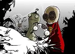 - ↑ Jhonen Vasquez (w, a). "The Greatest Comic Ever Made" Lenore, no. 8, p. 23 (February 1, 2002). San Jose, California: Slave Labor Graphics.
