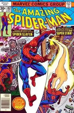 The Spider-Slayers are a group of robots that appear in the comic books published by Marvel Comics. Created by Stan Lee and Steve Ditko, the original Spider-Slayer first appeared in The Amazing Spider-Man #25 (June 1965). Primarily foes of Spider-Man, the first Spider-Slayer was built by scientist Spencer Smythe who created several more of the robots to combat the hero up until his death. Afterwards, several others made Spider-Slayers, including Alistair Alphonso Smythe.