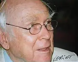 Loriot was awarded an honorary doctorate by the University of Wuppertal in 2001. He is honorary citizen of his hometown of Brandenburg an der Havel and his chosen home of Münsing from 1993 until his death. Furthermore, Loriot was a member of the Bayerische Akademie der Schönen Künste since that same year and of the Berlin Academy of Arts since 1997. He became honorary professor of theatrical arts at the Berlin University of the Arts in June 2003. He received numerous awards for his performance in TV, movies and other disciplines. He died in Ammerland at Lake Starnberg of old age.[1][4]