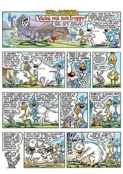 Lupo Alberto ("Alberto the Wolf") is an Italian comic book series created by Guido Silvestri (Silver) in 1974. It details the adventures of Lupo Alberto, a blue wolf. Lupo Alberto takes the shape of the common man who has a goal in life and a certain amount of bad luck. Alberto, a resident of the McKenzie farm, always tries to steal a hen named Martha (who is his girlfriend), but Moses, a sheepdog, is the obstacle to his plans and does everything to stop him. The conflicts between Alberto and Moses were the subject of the first strips of the series.