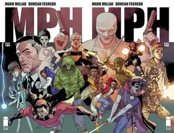 MPH (Miles Per Hour) is a British heist-action-thriller comic book limited series written by Mark Millar and illustrated by Duncan Fegredo. Published by Image Comics, the series is set in the Millarworld,[2][3] with its events being first referenced in 2014's Kick-Ass: The Dave Lizewski Years – Book Four.[4] Described as "The Fast and the Furious without cars",[5][6] the series follows a group of early-20s criminals who on discovering a drug that gives them super-speed, use it to go on a series of grand heists, while pursued by a government agency with a mysterious speedster of their own. The series, originally published between May 21, 2014, and February 18, 2015, was collected as a graphic novel on April 22, 2015.[7] Characters from the series would later return in the miniseries Big Game in 2023. Receiving a generally positive critical reception, both a comic book sequel and feature film adaptation of the series has been in development hell since its initial publication.