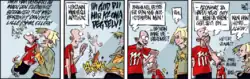 ![]() An example of M strip. The man to the left in the last three panels is Eriksen. The woman is The Madam. | |