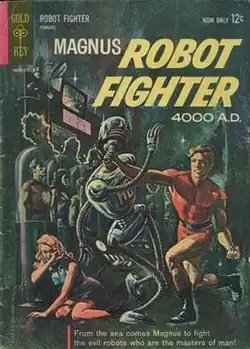 Magnus, Robot Fighter is a fictional superhero who battles rogue robots in the year 4000, appearing in comic books created by writer/artist Russ Manning in 1963.[1] Magnus first appeared in Magnus Robot Fighter 4000 A.D. #1, published by Gold Key Comics in February 1963.[1] The character was subsequently published by Valiant Comics and Acclaim Comics in the 1990s, and was reintroduced by Dark Horse Comics in August 2010. Some aspects of the concept have varied with each publisher.