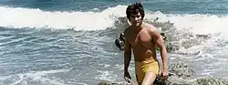 The supporting cast includes Belinda J. Montgomery as Dr. Elizabeth Merrill (who had nursed Mark Harris back to health) and Alan Fudge as C. W. Crawford, Jr., both of the Foundation for Oceanic Research. Victor Buono played the villainous Mr. Schubert in the pilot and several episodes of the series.[3] Kenneth Tigar appeared in the second, third, and fourth movies as Dr Miller Simon, also of the Foundation for Oceanic Research, and Fred Beir appeared in the third and fourth films as Captain Bracy, commanding officer of the Cetacean. Tigar and Beir did not appear in the weekly series, and the Cetacean now inexplicably seemed to be under the command of Mark himself despite the fact he was not a naval officer. The series added an ensemble cast as "The Crew of the Cetacean", variably consisting of Richard Laurance Williams, J. Victor Lopez, Jean Marie Hon, Anson Downes, Penelope Willis and Brandyn Artise.[4] The tone of the weekly series shifted away from the relatively serious science fiction tone of the TV movies and further into escapist fantasy, not too dissimilar to Star Trek with Mark as the adventurer captain of the Cetacean like Captain Kirk was of the USS Enterprise (Man from Atlantis producer and co-creator Herbert Solow was one of the people responsible for bringing Star Trek to the screen in the 1960s). In several episodes, Mark would swim through portals in the ocean that led to other places and even other times. In one episode, he crossed into a world set in the 19th century wild west, in another he entered a world inhabited by aliens, and he even travelled into 16th century Italy where he meets the fictional characters of Romeo and Juliet. No explanation was given to how these worlds existed via the ocean. As the scripts became increasingly "sillier" (Duffy himself later likened the series to the campy 60's TV series Batman), Montgomery's scientist character became more sidelined and the actress managed to get out of her contract with the help of lawyers after 11 episodes.[5] In the 12th episode, a new female lead character, Dr. Jenny Reynolds (played by Lisa Blake Richards) briefly replaced Elizabeth Merrill. However, the last episode did not feature any female lead character. Producer Herbert Solow also cast his then-wife Pamela Peters Solow, who was twenty years his junior, in the show twice. She first appeared in the fourth TV movie "The Disappearances", and then again (as a different character) in the ninth episode of the series, "C.W. Hyde". On both occasions she was given the prestigious screen billing of "and Pamela Peters Solow as...." despite being a relative unknown.
