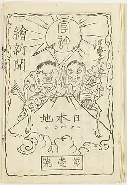 E-shimbun Nippon-chi (1874), published by Kanagaki Robun and Kawanabe Kyosai, is credited as the first manga magazine ever made.[85]