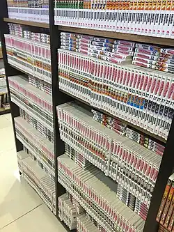 As of 2021, the top four comics publishers in the world are manga publishers Shueisha, Kodansha, Kadokawa, and Shogakukan.[20] In 2020 the North American manga market was valued at almost $250 million.[21] According to NPD BookScan manga made up 76% of overall comics and graphic novel sales in the US in 2021.[22] The fast growth of the North American manga market is attributed to manga's wide availability on digital reading apps, book retailer chains such as Barnes & Noble and online retailers such as Amazon as well as the increased streaming of anime.[23][24][25] Manga represented 38% of the French comics market in 2005.[26] This is equivalent to approximately three times that of the United States and was valued at about €460 million ($640 million).[27] In Europe and the Middle East, the market was valued at $250 million in 2012.[28]