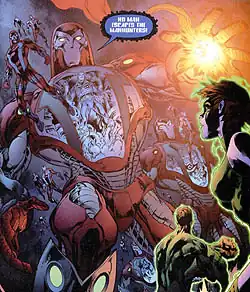 It is eventually revealed that the programming glitch the Manhunters suffered was caused by Krona to prove to the other Guardians of the Universe that there are flaws in an emotionless police force.[5]