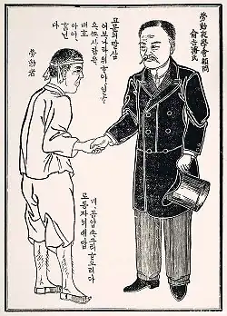 Political cartoon slowly reemerged following the establishment of the Republic of Korea (commonly known as South Korea) in 1948.[13] Popular artist Kim Yong-hwan started Korea's first comic magazine, Manhwa Haengjin, in 1948,[14] but it was quickly shut down because the authorities disapproved of the cover.