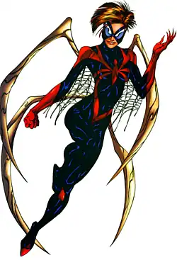 Martha "Mattie" Franklin is a superhero appearing in American comic books published by Marvel Comics. Created by writer John Byrne and artist Rafael Kayanan, Mattie Franklin first appeared in The Spectacular Spider-Man #262 (October 1998).[1] She is the niece of the Daily Bugle publisher J. Jonah Jameson.[2] She gained various superpowers after participating in a ceremony to give Norman Osborn wizard powers.[3] Her admiration for Peter Parker / Spider-Man inspired her to become a superhero when he disappeared.[4] Mattie Franklin is the third character who adopted the Spider-Woman codename.[5]