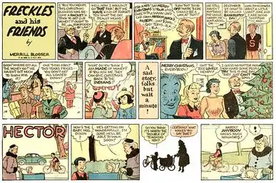 Merrill Blosser (May 28, 1892 – January 9, 1983) was an American cartoonist, the creator of the comic strip Freckles and His Friends, which had a long run (1915–1971).[1][2] Although his strip was set in the small town of Shadyside, it was obviously based on Blosser's hometown of Nappanee, Indiana, since Blosser often referenced real Nappanee locations, such as Johnson's Drug Store.[3]