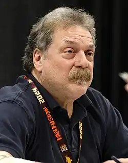 Mike DeCarlo entered the comics industry as an assistant to Dick Giordano.[3] When Giordano became an editor at DC Comics in 1980, DeCarlo became an inker in his own right.[4] DeCarlo inked the penciled artwork of George Pérez on "The Judas Contract" storyarc in Tales of the Teen Titans with Giordano.[5][6] Pérez critiqued their work in a 2003 interview stating that "While not perfect in getting the same feel [as Pérez inking the art himself], they were closer as far as the crispness that the characters needed."[7] He inked the Legion of Super-Heroes from 1986 to 1988[5] first with Greg LaRocque[8] and then briefly with Keith Giffen. As inker of the Batman comic book series, DeCarlo worked on several key storylines including the "Ten Nights of The Beast" which introduced the KGBeast; "A Death in the Family" which featured the death of the second Robin Jason Todd;[9] and "A Lonely Place of Dying" which saw Tim Drake become the third Robin.[5] In 2014, critic Greg Burgas of Comic Book Resources reviewed DeCarlo's inking of Jim Aparo's work on the final chapter of "Ten Nights of The Beast" commenting that "inkers who don’t add roughness to Aparo’s line work aren’t doing him any favors. DeCarlo is better than [Bill] Wray, but he still seems to keep Aparo’s work too smooth." He later adds that "I love the first image, with Batman and the Beast fighting in the sewer and the artists somehow putting their shadows on the wall. I don’t know if Aparo drew this in and then DeCarlo inked it, or if DeCarlo just inked it without the benefit of pencils. It’s quite cool, though."[10]