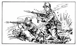 While Mirko is always brave and determined, Slavko tends to hesitate and sometimes can even get scared.[9] That is why Mirko is typically armed with MP 40, which was usually reserved for partisan commanders, while Slavko is typically armed with a regular rifle.[9]