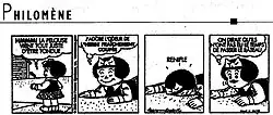 - Quino's Mafalda bears a strong resemblance to the earlier Nancy, which Quino mocks in one strip, where Miguelito buys a Nancy magazine and shows it to Mafalda noticing the resemblance, only for Mafalda to retort (off-frame) that she looks more like his grandmother.[90]