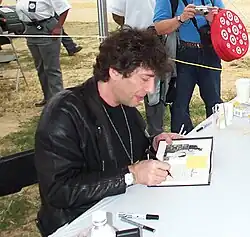 ![]() Neil Gaiman autographing a copy of Coraline, National Book Fair, Washington, D.C., 2005 | |