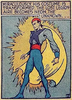 Neon the Unknown is a fictional superhero from the Golden Age of Comic Books created by Jerry Iger for Quality Comics. Neon first appeared in a story penciled and inked by Alex Blum in Hit Comics #1 and was featured on the cover of issue two drawn by Lou Fine.[1] His stories ran in issues 1–17.[2]