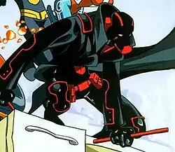 Night Thrasher is a superhero appearing in American comic books published by Marvel Comics. He first appeared in Thor #411 (December 1989), and was created by Tom DeFalco and Ron Frenz.[1] He is a non-superpowered vigilante, the son of murdered billionaire industrialist parents with ties to the Vietnam War, who uses an advanced suit of body armor, firearms, and a skateboard to battle his foes, and uses the billionaire resources of his family foundation to fund the New Warriors' battle against crime and corruption.