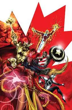 This team emerges from the aftermath of Marvel's Civil War crossover storyline. The lineup includes elements of the original Canadian super-team Alpha Flight as well as other superheroes, mostly American superheroes on loan from S.H.I.E.L.D. thanks to Iron Man and the Initiative. The team roster was meant to include Arachne, Michael Pointer as the new Guardian, Sasquatch, U.S. Agent, Beta Ray Bill and Talisman, but changes to the story after Omega Flight was reduced to a limited series meant that the final two never actually joined the team.[8]