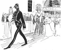 In 1906, Oskar, who apparently experienced long depressions and obsessive-compulsive disorder, committed suicide by shooting himself. The reasons for this are not entirely known, but Andersson was also known for his social anxiety, as well as incidents during his work as a reportage cartoonist, as he was exposed to severe mistreatment of military horses, which as an animal lover worsened his depression.[2] Andersson is buried at Ekerö church cemetery.