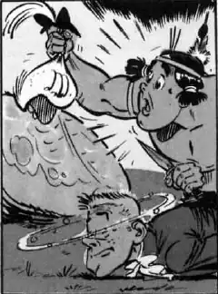 Oumpah-pah discovers the wig of a French aristocrat whom he subsequently dubs Two-Scalp.