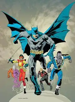The Outsiders are a superhero team appearing in American comic books published by DC Comics. As their name suggests, the team consists of superheroes who do not fit the norms of the "mainstream" superhero community, i.e. the Justice League.[1]