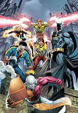 ![]() Cover of Convergence: Batman and the Outsiders #1 (June 2015). Depicting (top-to-bottom) Geo-Force, Halo, Batman, Katana, Black Lightning and Metamorpho Art by Andy Kubert. | |
