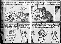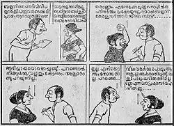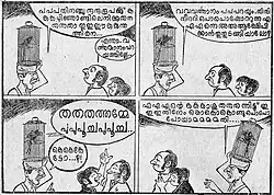 He drew cartoons mainly for Thaniniram daily, although he started drawing cartoons for Sarasan in 1950s. He also published cartoons in Asadhu, and Narmada. Later, his works appeared in Mathrubhumi, Janayugam, Malayala Nadu, Malayala Rajyam, and Manorajyam. Pachu, Kovalan, Mr. Kunju etc. are popular cartoon characters created by Manthri. Manthri himself appeared in many of his own cartoons. The beauty of his cartoon character Pachu's wife earned a lot of praise from readers, and was mentioned by Professor M. Krishnan Nair in his weekly article Sahitya Varabhalam in Kalakaumudi weekly. Manthri was a drawing teacher by profession but he left this in 1954. For some time, he worked for Calicut papers Desabhimani and Mathrubhumi. Then he joined the government education department, while continuing to work as a cartoonist.[1] His rash criticism through cartoons - in particular, a cartoon Kudanannakkan Aalilla which targeted the irregular appointment of Arabic teachers in schools from a particular community - irritated the then education minister C. H. Muhammed Koya. As a result, Manthri was suspended from government service for two and a half years from 1969. While he was under suspension, he still drew cartoons using the pseudonym 'Thanthri'. He also published a cartoon book named Chithrahasyam during this period. Over 20,000 copies of the book were circulated. He was allowed back into government service in 1973, as per the report of the then government secretary Malayattoor Ramakrishnan, who was also a cartoonist and novelist. Malayatoor mentioned this incident in his service story.
