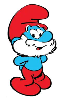Papa Smurf is one of the protagonists from the comic strip The Smurfs.[1] Most Smurfs are said to be about 100 years old, but at the advanced age of 546[2] (553 in the 1980s series episode "The Littlest Giant"), Papa is the oldest Smurf and the leader of all Smurfs. Despite his age, he is still quite energetic. Easily distinguishable from all the other Smurfs, Papa Smurf has a bushy white mustache and beard and is typically dressed in red pants and a matching red Phrygian cap, making him the only Smurf who does not wear white. He was introduced in Peyo's 1958 Johan and Peewit story "La Flûte à Six Trous", the first appearance of the Smurfs.[3]