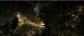 - Parallax appears in Green Lantern, voiced by Clancy Brown and motion-captured by an uncredited T. J. Storm.[20] This version feeds on life forces via organisms' fear and was created when Krona was corrupted by the yellow energy of fear after failing to control it. Abin Sur imprisoned the entity on the remote planet Ryut, but it later escapes and seeks revenge on the Green Lantern Corps, absorbing fear and life forces from multiple inhabited planets to strengthen itself and killing Abin in the process. After the Department of Extranormal Operations (DEO) recover Abin's body, they task Hector Hammond with performing the autopsy, during which he is infected with Parallax's DNA. It uses him in an attempt to kill Hal Jordan until he lures it away from Earth, where it is absorbed into the sun.