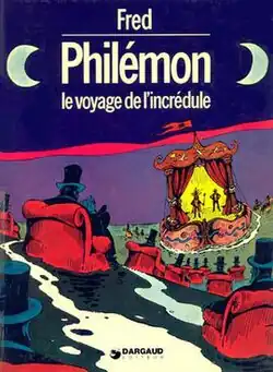 Philémon is a series in the Franco-Belgian comics style created by French artist Fred and published by Dargaud. The series began serial publication in the French magazine Pilote on July 22, 1965,[1] before it eventually became an album series. (Pilote was a direct response to the Franco-Belgian weeklies Spirou and Journal de Tintin, and sought to test more recent and dynamic strips on young and adolescent readers.) The general tone of the series is of fantastic realism, depicting the adventures of the young farmboy Philémon in surreal adventures featuring odd creatures in odd places, and it is considered one of the most poetic and original bande dessinée series of all time.[2]