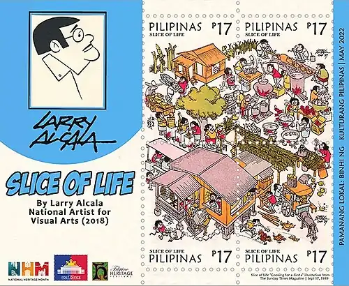 During this era, many artists emerged who would shape the history of Philippine comics.[42] Francisco Coching, a World War II guerrilla fighter,[22] established the indigenous style of Philippine comics with his dynamic and intricate drawings.[2] Nicknamed "the Dean of Philippine comics," Coching was posthumously honored with a National Artist award.[44] Larry Alcala left a lasting legacy with his 56-year career, notably through his Slice of Life, a single-panel comic strip series portraying daily life in the Philippines without dialogue.[45] Alcala was also bestowed with the title of National Artist.[46] Mars Ravelo introduced the iconic Filipino superhero, Darna.[2][47] Ravelo's other creations, such as Captain Barbell, Lastikman,[a] the mermaid Dyesebel, and the humorous character Bondying,[2] have seen remakes in the 21st century, captivating a new generation of readers.[49] Other notable figures include Alfredo Alcala, Clodualdo del Mundo, Nestor Redondo, Alex Niño, Pablo S. Gomez, and Jesse Santos.[42]